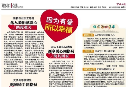鴻運(yùn)物業(yè)愛(ài)心捐助,獲寶安日?qǐng)?bào)報(bào)道。報(bào)道內(nèi)容如下: 倡議發(fā)出后得到了公司全體員工的積極響應(yīng),大家紛紛慷慨解囊,在一周時(shí)間公司406名員工伸出了大愛(ài)之手,共籌得愛(ài)心款20063元,極大緩解了賀正生一家的壓力,這一善舉體現(xiàn)了鴻運(yùn)公司濃濃的“如家人般關(guān)懷”的企業(yè)精神。公司一貫以人為本,孟春慰問(wèn)傳真情。鴻運(yùn)員工獻(xiàn)愛(ài)心,募捐善款救病人。鴻運(yùn)物業(yè)自成立以來(lái)始終堅(jiān)持以人為本,黨支部、董事會(huì)領(lǐng)導(dǎo)時(shí)刻把員工的冷暖掛在心間,把困難員工記在心坎上,為員工排憂解難,用真心真情關(guān)愛(ài)每一位員工,讓每一位員工充分感受到鴻運(yùn)物業(yè)大家庭的溫暖,讓愛(ài)充滿鴻運(yùn)!