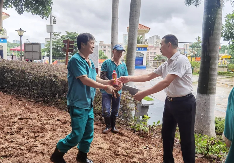 員工是企業(yè)最寶貴的財(cái)富,是企業(yè)發(fā)展的源動(dòng)力。6月24日,鴻運(yùn)物業(yè)總經(jīng)理陳喜祥、董事兼黨支部書(shū)記陳文遠(yuǎn),攜公司高層,頂著風(fēng)雨,前往旗下各項(xiàng)目,慰問(wèn)一線防疫員工。陳總表示:"目前深圳疫情防控形勢(shì)依舊嚴(yán)峻,作為物業(yè)人,我們肩負(fù)著牢筑小區(qū)和各項(xiàng)目安全防線的重任,同時(shí)承擔(dān)著較大的風(fēng)險(xiǎn)和壓力。尤其是寶安區(qū)項(xiàng)目的保安員們,他們迎著酷暑、冒著風(fēng)雨,測(cè)溫、查碼、登記、識(shí)別車(chē)輛和人員,堅(jiān)定地執(zhí)行寶安區(qū)疫情防控2號(hào)文件,一站就是六七個(gè)鐘,非常的辛苦。在此,我想對(duì)鴻運(yùn)物業(yè)一線防疫人員道一聲辛苦了!正是有你們的辛勤付出和無(wú)悔堅(jiān)守,我們鴻運(yùn)物業(yè)才能穩(wěn)步前行,我們的防疫工作才能取得一個(gè)又一個(gè)階段性的勝利?!标惪傆H手向值勤保安員們送上一瓶瓶解暑涼茶,保安員們以敬禮來(lái)回敬。 黨支部書(shū)記陳文遠(yuǎn)握著保安員的手,叮囑他們務(wù)必做好個(gè)人防護(hù),一定要注意自身安全。激勵(lì)他們?cè)賵?jiān)持堅(jiān)持,相信疫情在我們的共同努力下很快就會(huì)過(guò)去。陳文遠(yuǎn)書(shū)記表示:“堅(jiān)定不移地落實(shí)好最新防疫政策,守護(hù)居民安全,是我們鴻運(yùn)人義不容辭的責(zé)任。公司及黨支部將竭力為一線員工提供充足的后勤保障,同時(shí)希望每一個(gè)鴻運(yùn)人為疫情防控貢獻(xiàn)力所能及的力量?!兵欉\(yùn)物業(yè)關(guān)注員工健康,這是我們打贏疫情防控戰(zhàn)的基石,為此公司下達(dá)《關(guān)于疫情期間加強(qiáng)員工健康管理的通知》,要求各部門(mén)、管理處落實(shí)好監(jiān)督職責(zé),...