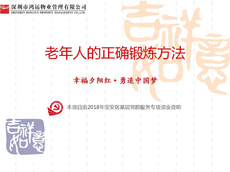 點擊下方鏈接,可進入百度網(wǎng)盤,下載“幸福夕陽紅·勇追中國夢”項目老人健身PPT課件。 鏈接:https://pan.baidu.com/s/1qqhrnVeQ6qpDhe5qNeo1ZQ 提取碼:epiv