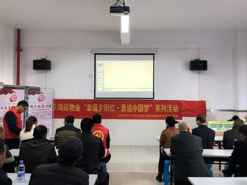 本項目由2018年寶安區(qū)基層黨群服務(wù)專項資金資助 “幸福夕陽紅·勇追中國夢”便民政策講解第一場、第二場,分別于2019年1月17日、19日,在寶安區(qū)沙井街道壆崗盛芳園和壆崗鑫鳳教育圓滿舉辦。 本講座用簡明易懂的話語,向“深漂”老人講述異地就醫(yī)直接結(jié)算、投靠子女入深戶、辦理深圳敬老優(yōu)待證和免費乘車證、在深辦理港澳通行證和護照等政策利好,同時告知老人朋友們每年一次免費體檢和流感、肺炎疫苗免費接種的福利,并引導(dǎo)老人在深圳養(yǎng)狗務(wù)必辦理養(yǎng)犬登記證。 便民政策講解第一場圖片展示 便民政策講解第一場,于1月17日在壆崗盛芳園舉辦。共分7個部分,向“深漂”老人們宣講醫(yī)保、養(yǎng)老等便民政策,讓大家知悉最新動態(tài),充分享受政策利好。許多老人朋友們在聽完講座后表示,之前并不知道深圳為“深漂”老人出臺了這么多便民政策,現(xiàn)在通過講座知道后,就可以充分享受福利了。 (學(xué)員們聚精會神聽老師講課) (老師聲情并茂地講述便民政策) (學(xué)員正襟危坐,認(rèn)真聽講) 便民政策講解第二場圖片展示 便民政策講解第二場,于1月19日在壆崗鑫鳳教育舉辦。主辦方鴻運物業(yè)聯(lián)合鑫鳳教育,號召老年學(xué)員前來參加。在此,感謝大家能在周六抽出寶貴的時間前來聽課,學(xué)員們的微笑就是我們最大的動力。 (老師正在演示PPT) (阿姨們露出滿意的笑容) (學(xué)員們正在認(rèn)真聽課) 在此,我們感謝老年朋友們對“幸福夕陽紅·勇追中國夢”系列活動的...